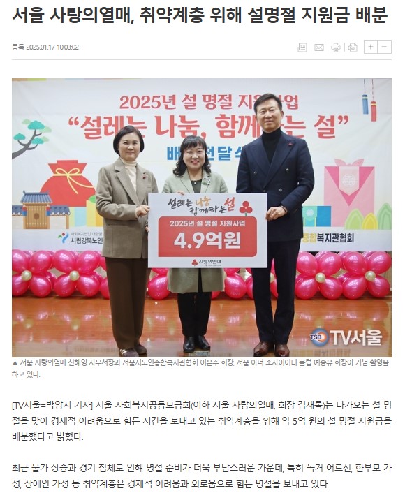 [2025.01.17] 서울 사랑의열매, 취약계층 위해 설명절 지원금 배분 - TV서울
