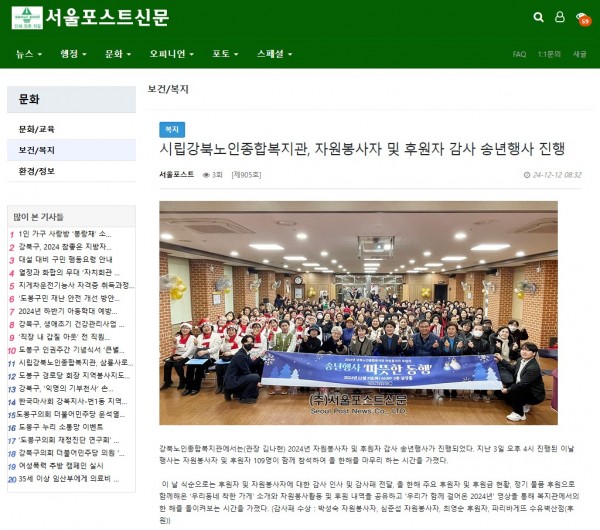 [2024.12.12] 시립강북노인종합복지관, 자원봉사자 및 후원자 감사 송년행사 진행-서울포스트신문