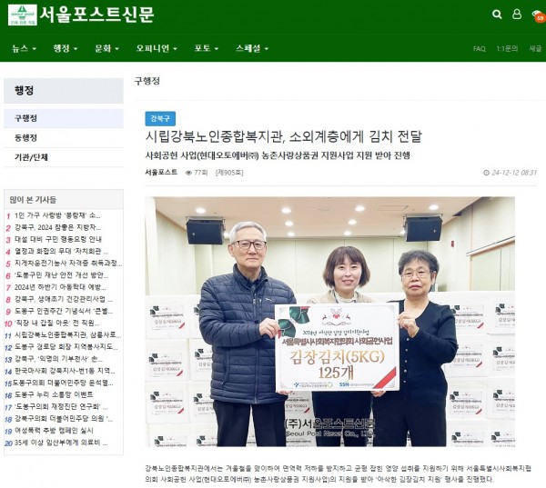 [2024.12.12]시립강북노인종합복지관, 소외계층에게 김치 전달 _ 구행정 _ 서울포스트신문
