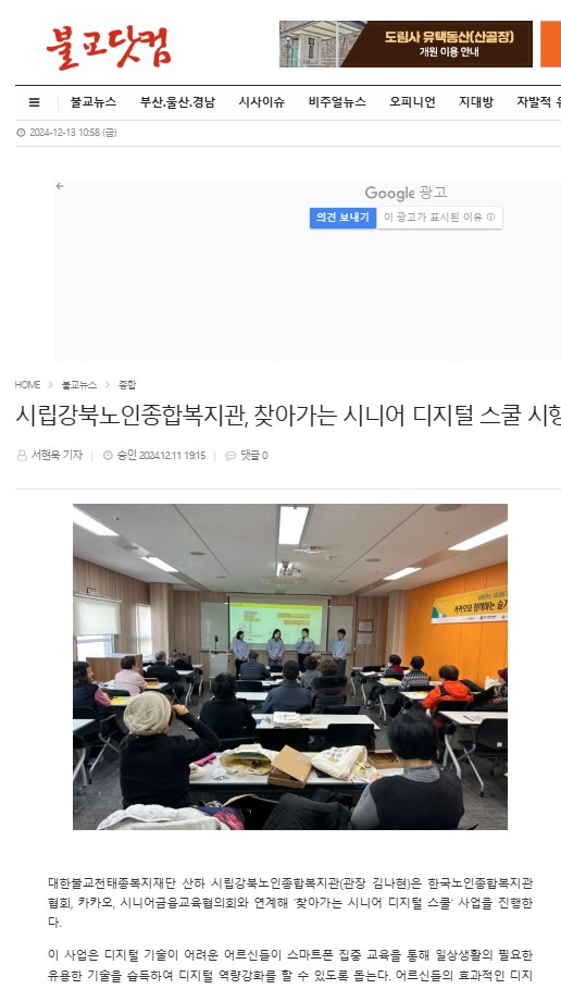 [2024.12.11] 시립강북노인종합복지관, 찾아가는 시니어 디지털 스쿨 시행 - 불교닷컴