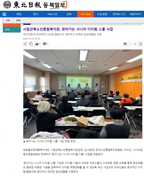 [2024.12.12] 시립강북노인종합복지관, 찾아가는 시니어 디지털 스쿨 사업-동북일보