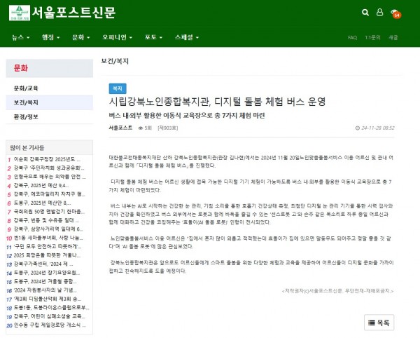 [2024.11.28] 시립강북노인종합복지관, 디지털 돌봄 체험 버스 운영 _ 보건_복지 _ 서울포스트신문