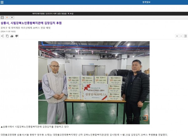 [2024.11.30] 삼룡사, 시립강북노인종합복지관에 김장김치 후원-동북일보