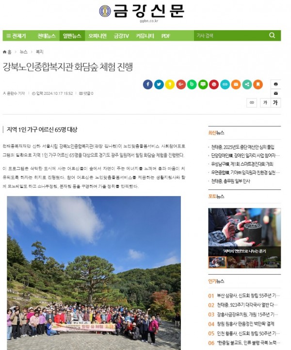 [2024.10.17] 강북노인종합복지관 화담숲 체험 진행- 금강신문