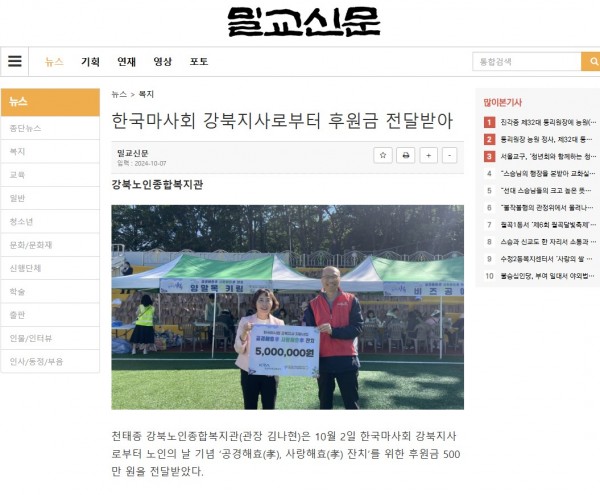 [2024.10.07] 한국마사회 강북지사로부터 후원금 전달받아 _ 뉴스 _ 밀교신문