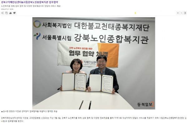 [2024.07.21]강북노인종합복지관&시립강북노인종합복지관 업무협약(동북일보)