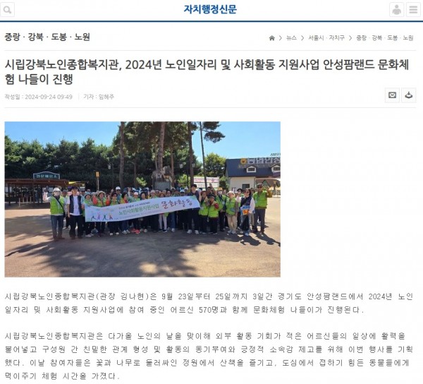 [2024.09.24] 시립강북노인종합복지관, 2024년 노인일자리 및 사회활동 지원사업 안성팜랜드 문화체험 나들이 진행_자치행정신문