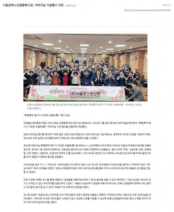 [2024.05.15] 시립강북노인종합복지관, 어버이날 기념행사 개최_서울포스트신문