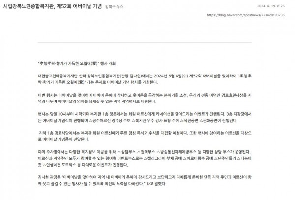 [2024.04.19]시립강북노인종합복지관, 제52회 어버이날 기념_강북신문
