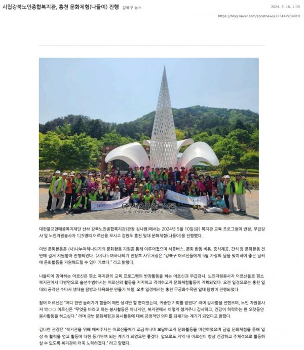 [2024.05.16] 시립강북노인종합복지관, 홍천 문화체험(나들이) 진행