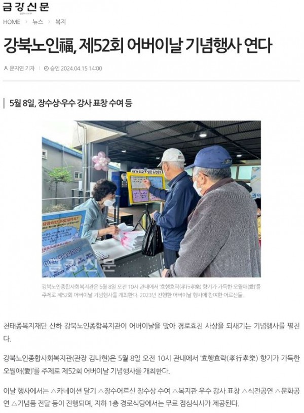 [2024.04.15]강북노인, 제52회 어버이날 기념행사 연다_금강신문