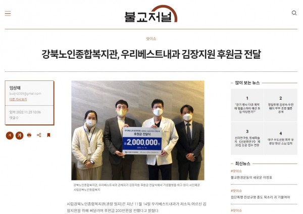 [2022.11.25] 불교저널-강북노인종합복지관, 우리베스트내과 김장지원 후원금 전달
