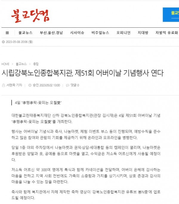 [2023.05.02]불교닷컴-시립강북노인종합복지관, 제51회 어버이날 기념행사 연다