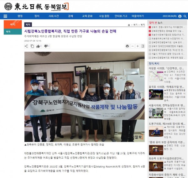 [2022.07.26] 동북일보-시립강북노인종합복지관, 직접 만든 가구로 나눔의 손길 전해