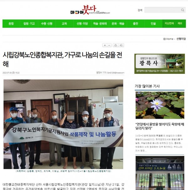 [2022.07.26] 미디어붓다-시립강북노인종합복지관, 가구로 나눔의 손길을 전해