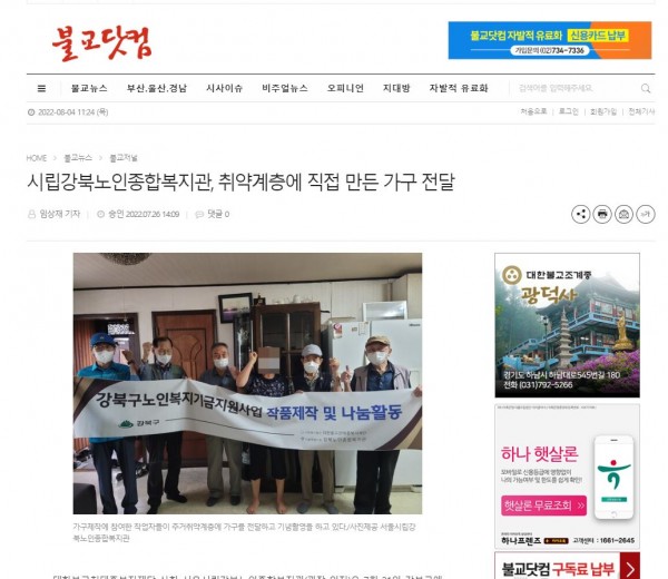 [2022.07.26] 불교닷컴-시립강북노인종합복지관, 취약계층에 직접 만든 가구 전달