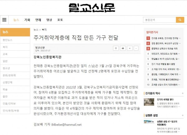[2022.7.27] 밀교신문-주거취약계층에 직접 만든 가구 전달