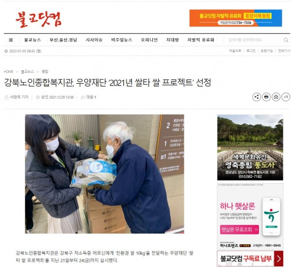 [2021.12.29] 불교닷컴-강북노인종합복지관, 우양재단 '2021년 쌀타 쌀 프로젝트' 선정