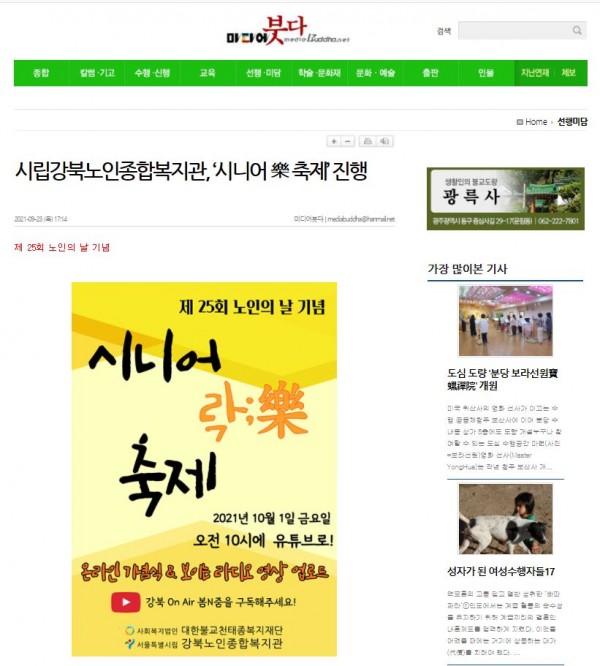[2021.09.23] 미디어붓다-시립강북노인종합복지관, ‘시니어 樂 축제’ 진행