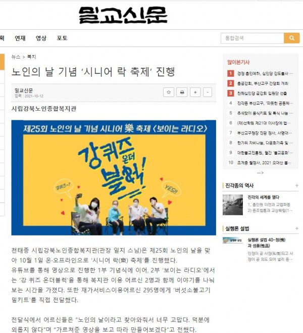 [2021.10.12] 밀교신문-노인의 날 기념 ‘시니어 락 축제’ 진행