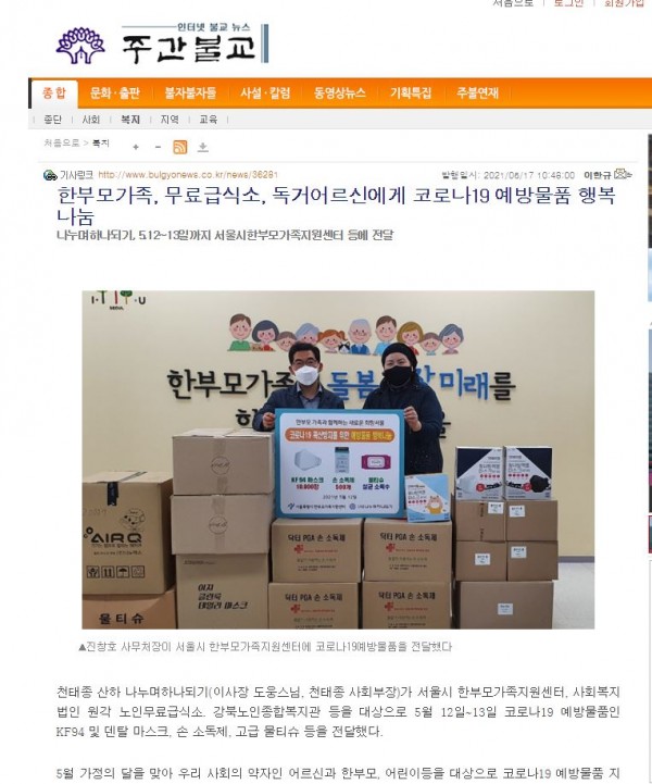 [2021.05.17] 주간불교-한부모가족, 무료급식소, 독거어르신에게 코로나19 예방물품 행복나눔