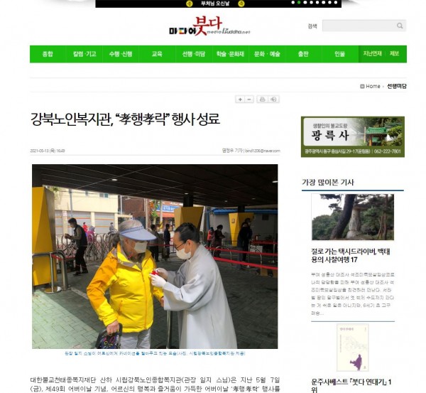 [2021.05.13] 미디어붓다-강북노인복지관, '효행효락'행사 성료