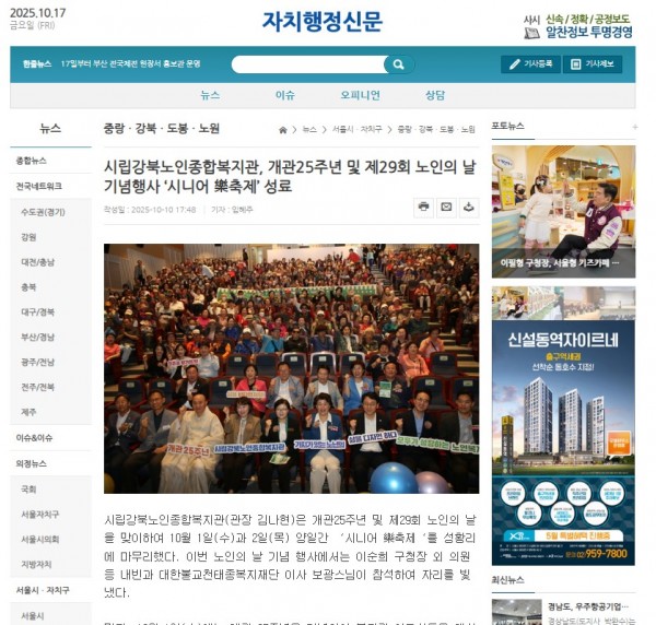 [2025.10.10] 시립강북노인종합복지관, 개관25주년 및 제29회 노인의 날 기념행사 ‘시니어 樂축제’ 성료 - 자치행정신문