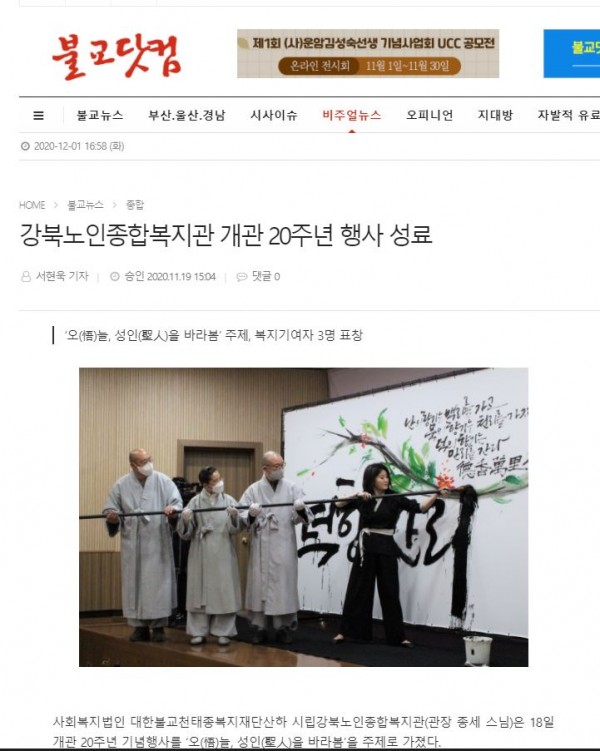[2020.11.19]불교닷컴-강북노인종합복지관 개관 20주년 행사 성료