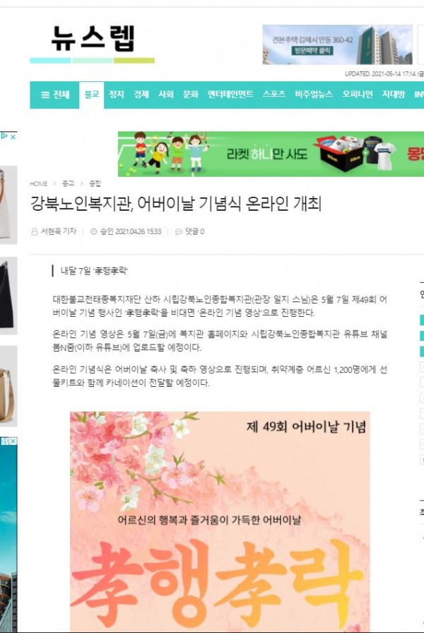 [2021.04.26] 뉴스렙-강북노인복지관, 어버이날 기념식 온라인 개최