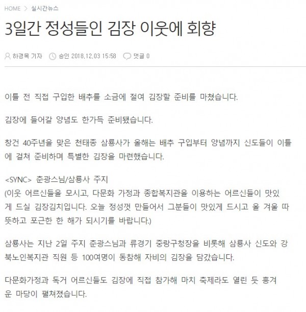 [2018.12.03] BTN불교TV - 3일간 정성들인 김장 이웃에 회향
