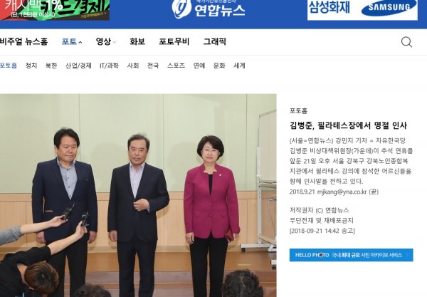 [2018.09.21] 연합뉴스 - 김병준, 필라테스장에서 명절 인사