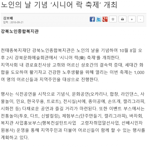 [2018.09.21] 밀교신문 - 노인의 날 기념 시니어 락 축제 개최
