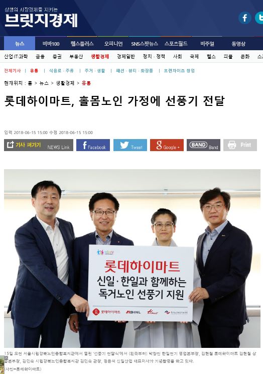 [2018.06.15] 브릿지경제 - 롯데하이마트, 홀몸노인 가정에 선풍기 전달
