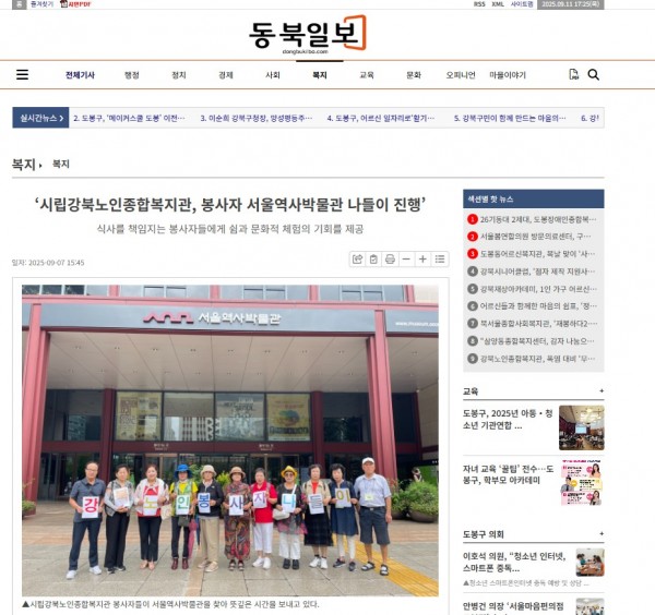 [2025.09.07] ‘시립강북노인종합복지관, 봉사자 서울역사박물관 나들이 진행’ - 동북일보