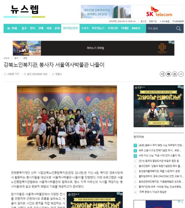 [2025.09.08] 강북노인복지관, 봉사자 서울역사박물관 나들이 - 뉴스렙