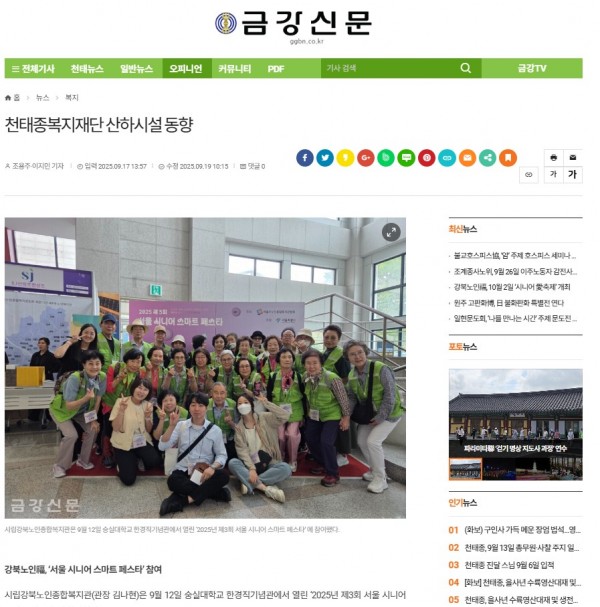 [2025.09.17] 천태종복지재단 산하시설 동향 '강북노인福, ‘서울 시니어 스마트 페스타’ 참여' - 금강신문