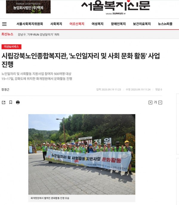 [2025.09.19] 시립강북노인종합복지관, '노인일자리 및 사회 문화 활동' 사업 진행 - 서울복지신문