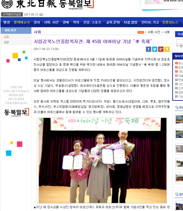 [2017.04.23] 동북일보 - 시립강북노인종합복지관 제45회 어버이날 기념 孝 축제