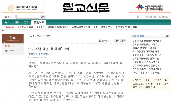 [2017.04.24] 밀교신문 - 어버이날 기념 '효'축제 개최