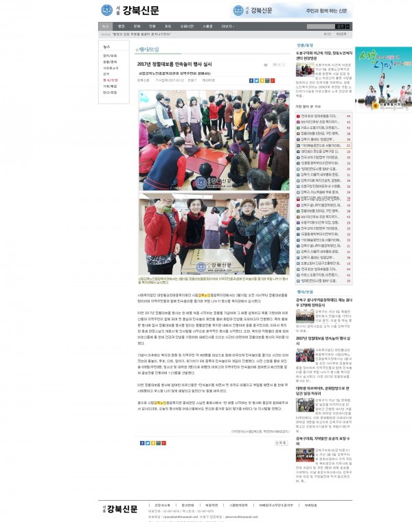 [2017.02.12] 강북신문 - 2017년 정월대보름 민속놀이 행사 실시