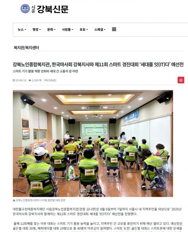 [2025.08.12] 강북노인종합복지관, 한국마사회 강북지사와 제11회 스마트 경진대회 ‘세대를 잇(IT)다’ 예선전 - 서울강북신문
