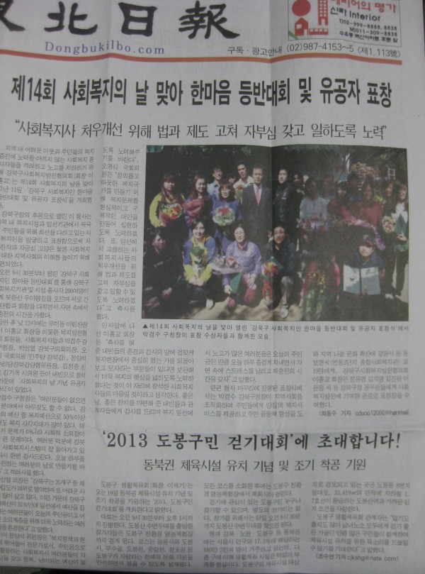 [2013.10.14] 동북일보 - 제14회 사회복지의 날 맞아 한마음 등반대회 및 유공자 표창