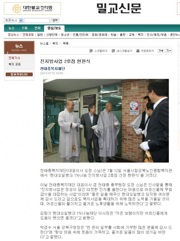 [2013.7.15] 밀교신문 - 진지방사업 2호점 현판식
