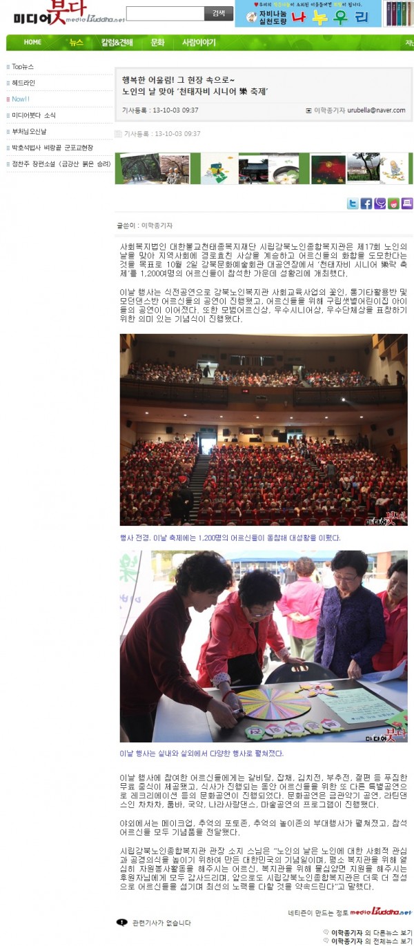 [2013.10.3] 미디어붓다 - 행복한 어울림! 그 현장 속으로~ 노인의날 맞아 '천태자비 시니어 樂축제'