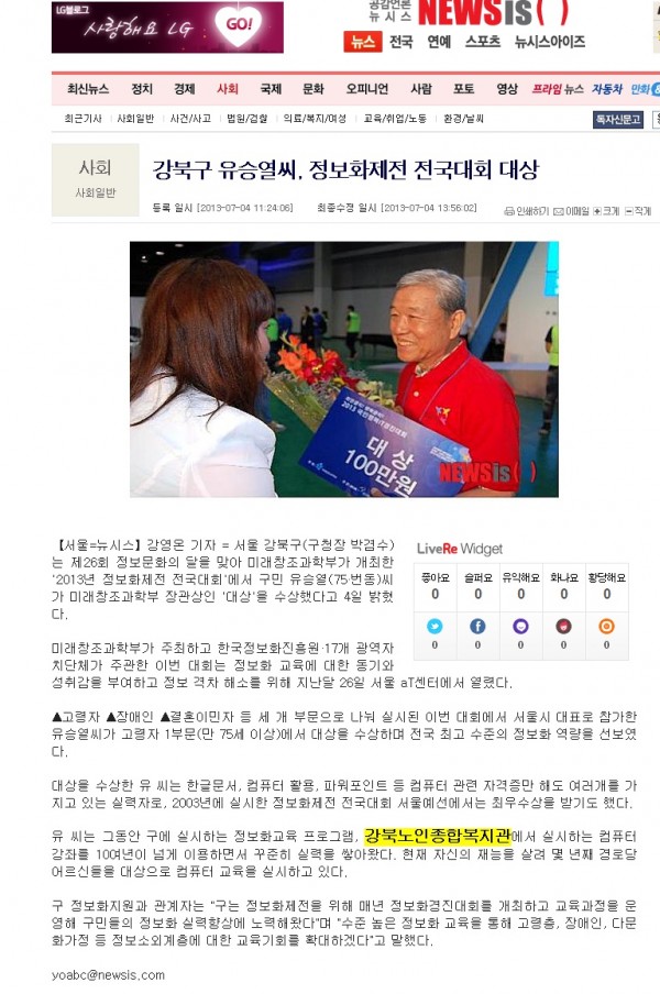 [2013.7.4] NEWSIS - 강북구 유승열씨, 정보화제전 전국대회 대상