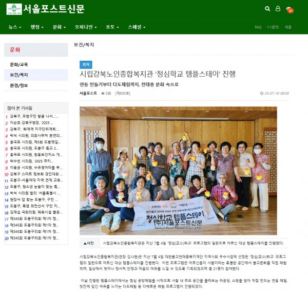 [2025.07.10] 시립강북노인종합복지관 ‘정심학교 템플스테이’ 진행 - 서울포스트신문