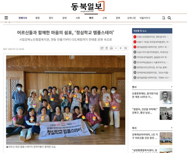 [2025.07.13] 어르신들과 함께한 마음의 쉼표, ‘정심학교 템플스테이’ - 동북일보