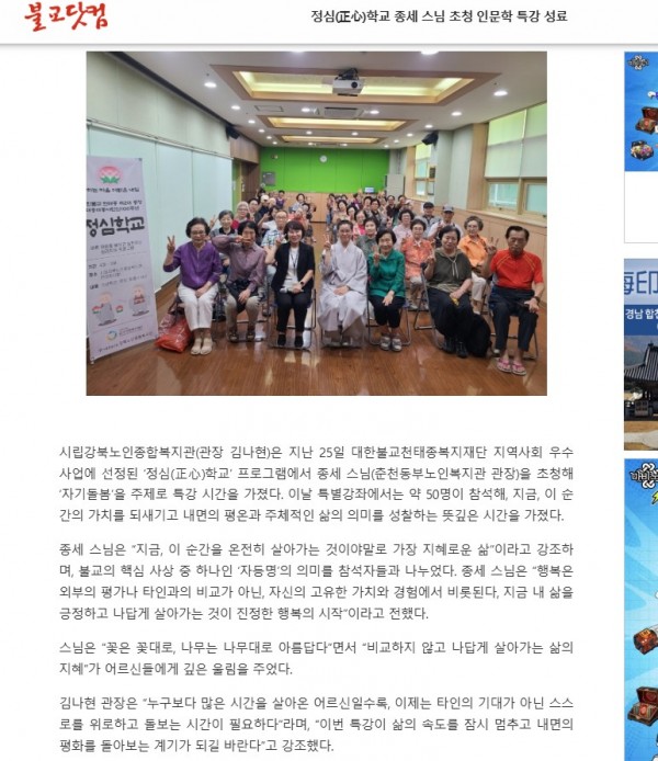 [2025.07.30] 정심(正心)학교 종세 스님 초청 인문학 특강 성료 - 불교닷컴