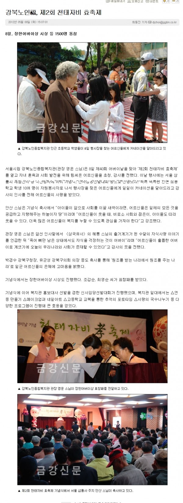 [2012.5.8]금강신문 - 강북노인, 제2회 천태자비 효축제