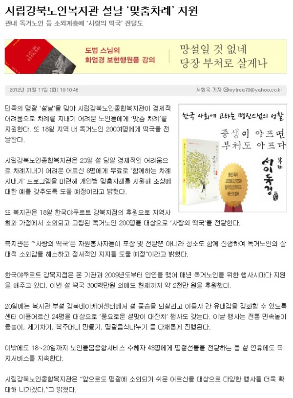 [2012.1.17]불교닷컴 - 시립강북노인종합복지관 설날 '맞춤차례' 지원